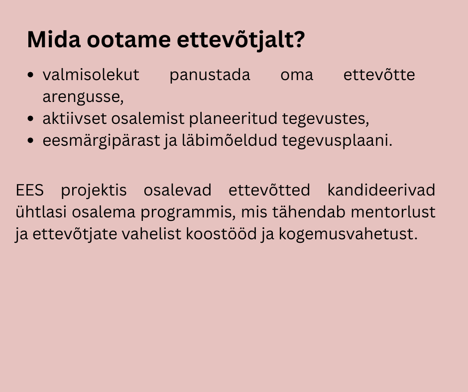 - Vali välja arendustegevus(ed), mis sinu ettevõtte arengueesmärke parimal moel toetavad (vt. statuut toetatavad tegevused).