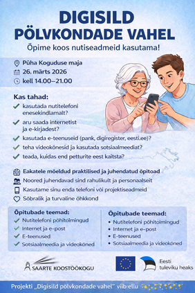 Jätkub projekt „Digisild põlvkondade vahel“ ühendab Saaremaa noored ja eakad ühise eesmärgi nimel – õppida koos toime tulema üha digitaalsemas maailmas. Koolinoored tegutsevad vabatahtlike juhendajatena, aidates eakaid praktilistes töötubades omandada oskusi nutitelefoni, interneti ja e-teenuste turvaliseks kasutamiseks.