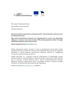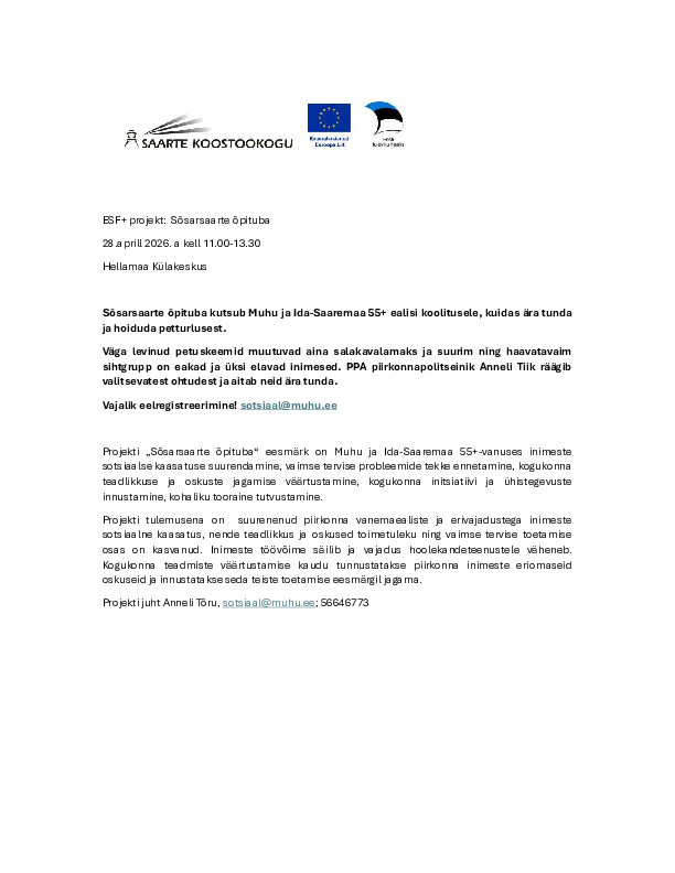 Vajalik eelregistreerimine! sotsiaal@muhu.ee