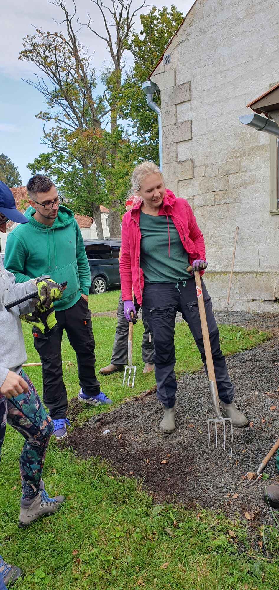 Suure osa koolitusest täitis praktiline töö aias: uue peenra pinnase ette valmistamine, umbrohtude kõrvaldamine, istutavate taimede ette valmistamine ja taimede istutamine.
